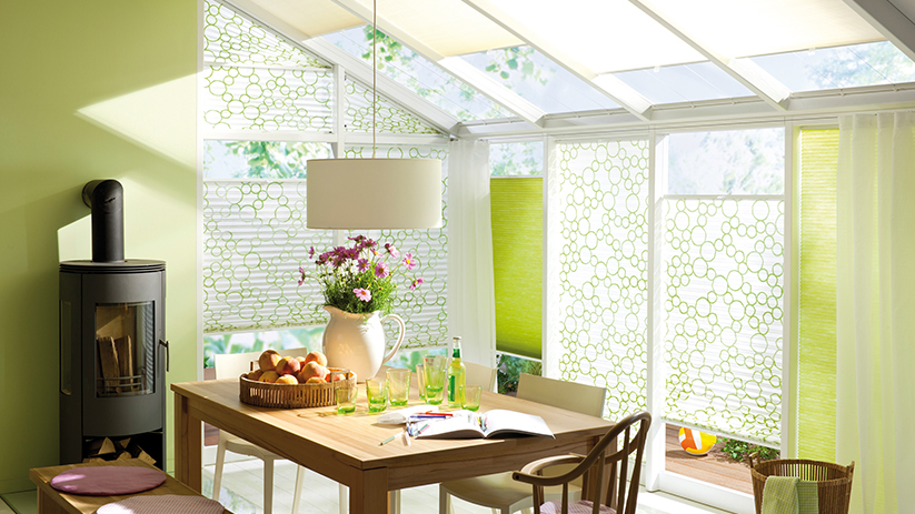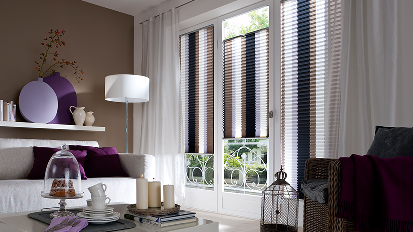 Die Wabenstruktur der DUETTE® Faltstores bildet am Fenster ein elegantes, gleichmäßiges Bild. Weil Zugschnüre und Spanndrähte verdeckt innerhalb der Waben laufen, werden die unerwünschten Lichtschlitze vermieden. Die Luftpolster innerhalb des Plissees sorgen für einen wohltuenden Temperaturausgleich. DUETTE® ist geeignet für alle Fensterformen und für viele Dachfenster, unter anderem für alle Veluxtypen.